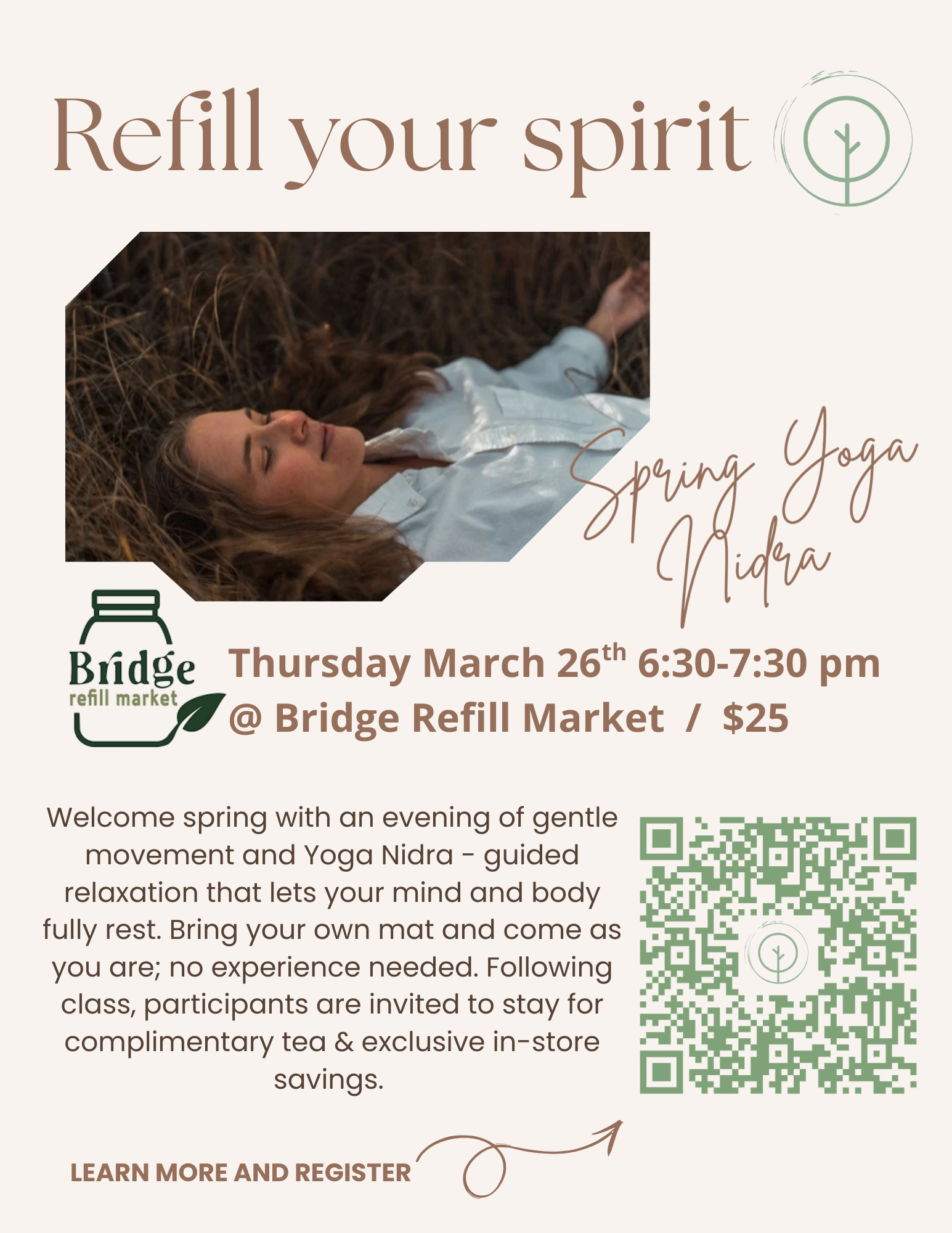 Very excited to be offering a seasonal yoga nidra series at Bridge Refill Market in Erie. We’re kicking it off with some spring rest March 26th, and space is limited!